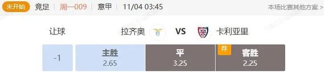 竞足 周一009 意甲 拉齐奥VS卡利亚里