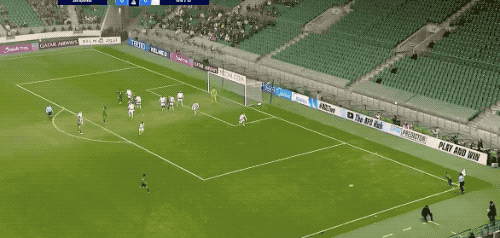第13分钟,法比奥连续晃动后选择传球,达万的射门打在防守球员身上,弹出底线。